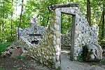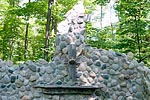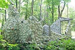 Badanna Zack's sculptural installation On The Shield, references the era of early settlement in the Muskoka area. And here Zack reconstructs the human histories emanating from the site. On the Shield, a domestic structure fabricated from contemporary building materials is introduced into the site, and the incorporation of large boulders found on site, attest to the geological age of the area. On The Shield, a re-imaging of a time when humans and nature co-habited in harmony. Returning to The Tree Museum has given me a voice to express my concerns about the environment, in particular the clear cutting of old growth forests, from Vancouver to Brazil. We cannot return to the past and a simpler time, but we must learn to take care of Planet Earth. BZ