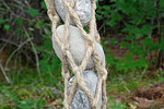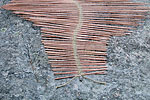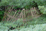 A Gathering of Quivers is a site specific installation of bamboo and copper quivers suspended vertically among trees, horizontally between trees, stretched on top of and suspended over large rocks and lichen beds. The primary intention is create a group of shape changing objects that blend into the surroundings in a way that implies a historical presence in the environment. when visiting the site these are works that you need to look for as they blend into the landscape.