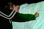 "Up on the rocks, we wander like shipwrecked sailors. There is something spooky about this solid-liquid, a deceitful quality that conjures up shapes and shadows. I'd like to bring on the hallucinations, to emphasize the mirage-inducing quality of this place. The installation 'Erratic Theatre' absorbs energy and then hovers between the real and the projected."
