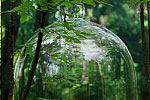 Penelope Stewart: While walking in the woods a couple of years ago I began to imagine what if there was a huge glass bell jar at architectural scale hidden amongst the trees. I decided at that moment to site and photograph my real glass domes in the Northern Ontario boreal forest. It was soon clear to me that I wanted the inside of the bell jar to be empty and the reflection of trees on the outside, contrary to the function of the bell jar. Then when the photograph was enlarged to architectural scale, and installed in the forest, Cloche, became a blind, an illusion or a suggestion of an architectural folly. I liked the inversion and the tension between the wild or seemingly disorder of the forest; the reflection of the forest on and through the glass jar; the transformation of the domestic object to architecture; the siting in the forest and the photographic process itself which further suggests trace and apparition. All these layers merge together and explore intrinsic paradox, metaphors and blurs which enhance the experience of this imaginary site or daydream of the garden.