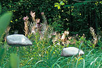 Christy Thompson: Borealis is in large part built upon the precepts of illusion. It is a constructed and directed kind of seeing Thompson would have us engage in, evidenced in her sculptural articulation of a series of spurious geological objects carefully sited within an actual natural setting, and via the nighttime visibility of the rock artefacts which fluoresce when briefly illumined at night by a nearby light (a sight few visitors to this place would actually have the opportunity to witness). We have long used nature as a setting or even shelter for our dreams, fantasies, and illusions. And we have long projected whatever psychological, philosophical, social, political shapes we want onto it, rendering the natural world little more than a stage on which we might observe big and little dramas of Life playing themselves out. However, with Borealis, the cat is out of the proverbial bag. Thompson tries to fool no one, for this is a self-conscious theatricality in which we take part. In the end, there are simply artificial rocks and real grasses swaying in a wind that is of no ideological use to anybody.