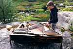 Central to my installation is a strung piano harp, (the inside of a piano without the keys or hammers). My intention is to create a piano mobile where the motion of wind and water will activate the strings, gently plucking and brushing the harp. The piano harp will sound on it's own, the energy for turning the mobile will be natural. In my imagination, it is an ode to Orpheus' lyre and his song for Persephone beneath the earth. Piano Mobile will take the heart of the piano, its strings, and have them played by nature and will radiate within the natural sound environment of the Tree Museum, its forest and meadows. People wandering through the landscape will hear an intermingling between the natural sound environment and the piano mobile and my performance on an upright piano. I will improvise between both the standing upright and the exposed strings of the piano harp and a multi track and broadcast by Canadian composer Ann Southam's one-hour long piano solo 'Simple Lines of Enquiry' performed and recorded by me. The mix will be broadcast through the speakers situated throughout the site. This version of 'Simple Lines of Enquiry' will be an hommage to Ann and her love of nature. Nature has always been an inspiration in my artistic practice.