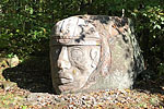 With this work Hastenteufel fuses two separate but related concepts. The carving of an erratic rock from the pre-Cambrian era (Canadian Shield) into an Olmec head (pre-Columbian civilization), and the concept of bridging the history of the land in Canada, to the history of an ancient civilization in Mexico.