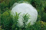 She told me that the first time she visited the Tree Museum, what attracted her most about the landscape was not the forest itself but the way in which the sunlit meadow clearing dissolved into the thick dark shadows of the woods. The first image that this border between clearing and woods conjured in her mind was one of shear white cloth floating in air, traces of tree nymphs or midnight witches who could slip through the porous boundaries of matter and spirit. In the metamorphosis from this image into the objects that lay before me, it was as if Dijkstra had found a metaphor for enchantment, casting a spell through her transformation of cloth into twine that drew us back to a time when nature was animated by folklore and a sensual energy filled the air. At once familiar and strange, natural and unnatural, these artificial spheres did not draw attention to the differences between spirit and matter but to their resemblances. The sensation that the natural world and its cultural expression were not separate but intimately intertwined had become embodied in the material residue of the white spheres resting lightly on the late summer foliage.