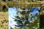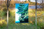 ...E.J. Lightman's Impossible Sites for Growth, an installational work mounted at The Tree Museum in the summer of 2007, sheds some light on our (mis)-understanding of a historic work like Spiral Jetty, the piece that set an early course for artists working directly with nature. Lightmans work addressed the issue at the heart of the Smithson dilemma and consequently encompasses issues relevant to any discussion of art that directly responds to the contexts of nature. Between two trees on a slope of land that leads down to a lake abutting The Tree Museum property, Lightman strung up two banners, back to back, each depicting a different photographic image of trees growing from rocky outcroppings of the Canadian Shield somewhere else on the site. Out here, in an admittedly reshaped version of the natural world, the view is overridden by, well, a view. Impossible Sites for Growth (which Lightman has stated was born of her fascination with trees that grew from the rocks, cracking open small fissures with their roots so they could somehow survive in a difficult place5) experientially displaces what we understand as being natural with what we recognize as decidedly artifactual: images of what it displaces, representations (photographs) of the thing, and not the thing (the natural world) itself...