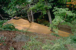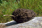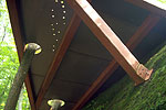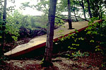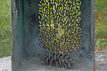 ...E.J. Lightman's Impossible Sites for Growth, an installation work mounted at The Tree Museum in the summer of 2007, sheds some light on our (mis)-understanding of a historic work like Spiral Jetty, the piece that set an early course for artists working directly with nature. Lightman’s work addressed the issue at the heart of the Smithson dilemma and consequently encompasses issues relevant to any discussion of art that directly responds to the contexts of nature. Between two trees on a slope of land that leads down to a lake abutting The Tree Museum property, Lightman strung up two banners, back to back, each depicting a different photographic image of trees growing from rocky outcroppings of the Canadian Shield somewhere else on the site. Out here, in an admittedly reshaped version of the natural world, the view is overridden by, well, a view. Impossible Sites for Growth (which Lightman has stated was born of her fascination with trees that grew from the rocks, cracking open small fissures with their roots so they could somehow survive in a difficult place5) experientially displaces what we understand as being natural with what we recognize as decidedly artifactual: images of what it displaces, representations (photographs) of the thing, and not the thing (the natural world) itself.... Gil McElroy, "New of Difference" The Tree Museum (The Tree Museum). Sky Shelter made of industrial steel (40 feet long) is attached to and frames a part of the Pre -Cambrian shield. The use of industrial steel gives the work tensile strength and visual weight, creating a dialogue between the enormous dense rock and the steel, a balance between the natural and manmade. The steel, which appears to cut into the rock, functions as a shelter for the mosses, trees and flora growing on and around the rock. The massive rock that it frames, almost dwarfs the sculpture, reminding us of nature's awesome physical powers. Sky Shelter is about framing the moss and the rock, focusing our attention, a viewing room for nature. Pinecone Seed is a homage to nature, two elements, and one with its roots in the northern landscape, the other combining elements of the exotic south and the Canadian landscape. Two elements, created from found objects, pinecones, coral and a cardboard box, the castoffs of nature and urban life, given new meaning and life. The other is an altar like piece, comprised of coral, cardboard box and a pinecone, working together as a space that promotes constant growth and change. Like Sky Shelter, Pinecone Seed draws our attention to the tenacity of nature, and its endurance.